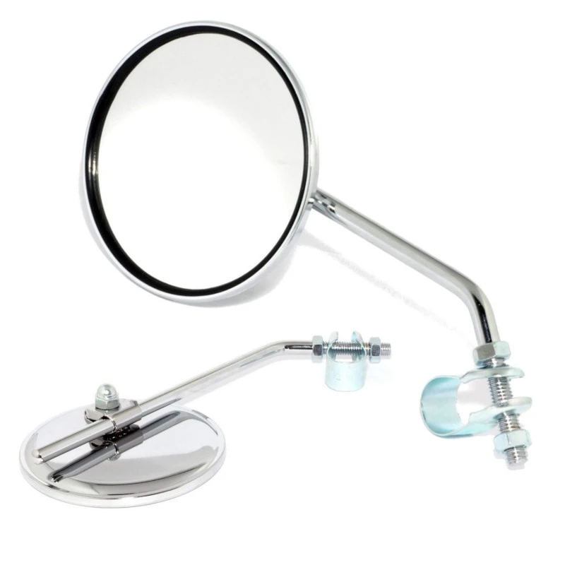 Rétroviseur rond chromé ; Réversible, peut-être utilisé à droite ou à gauche ;