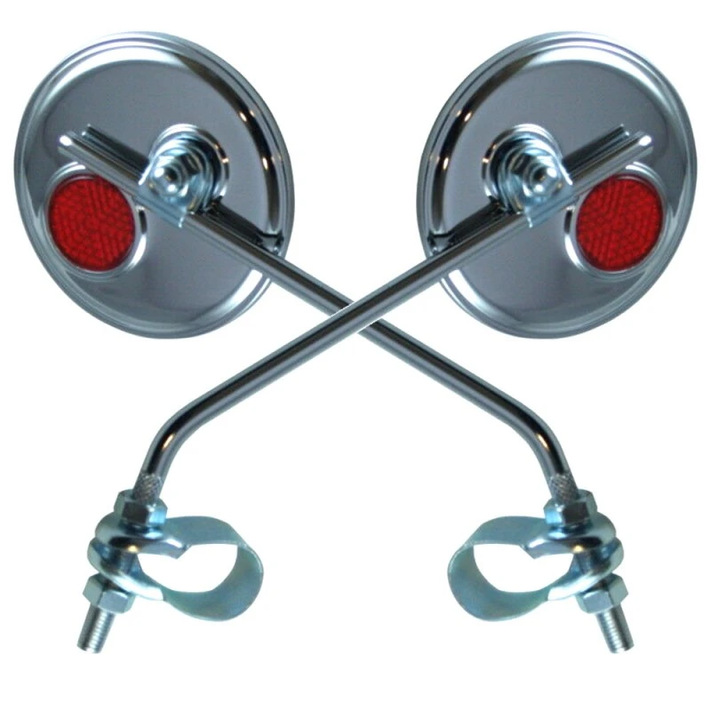 2x Rétroviseur rond chromé avec catadioptre ; Réversible, peut-être utilisé à droite ou à gauche ;