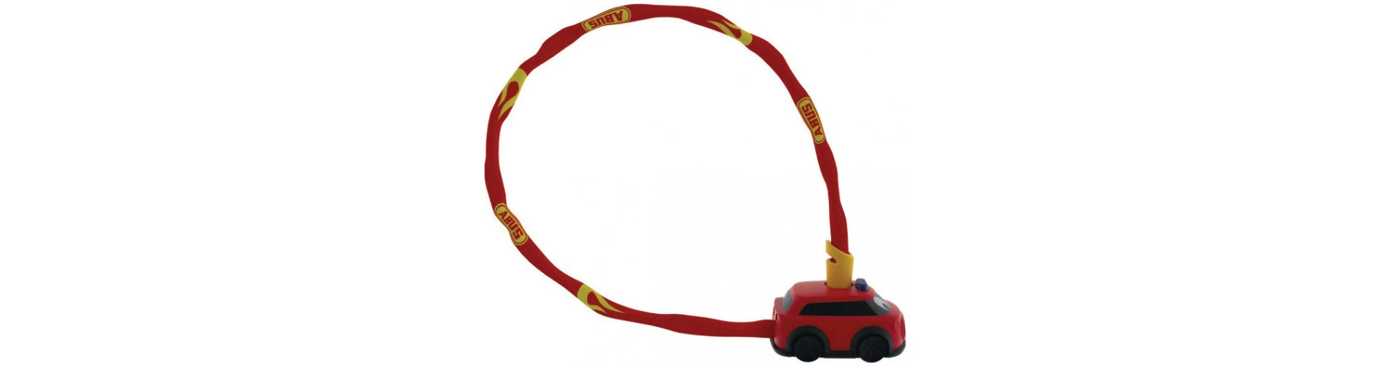 Chaîne à maillons ronds de 4 mm équipé d’un gainage en tissu, pour protéger la peinture du vélo Manipulation très facile, même pour les enfants grâce à son cylindre automatique