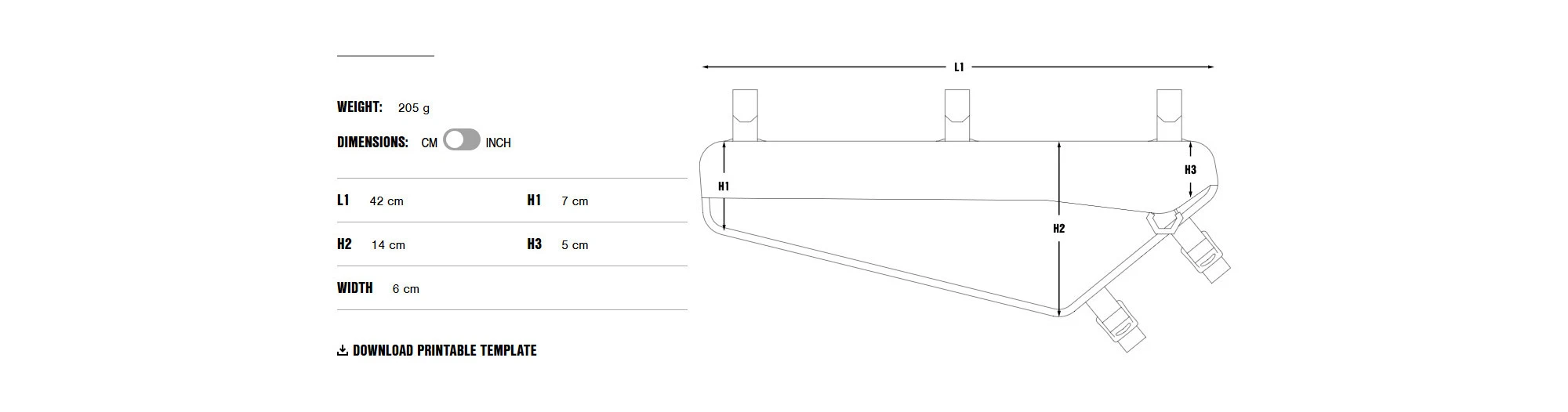 Conçu pour les besoins de la compétition ultra-distance et audax, cette sacoche de cadre (volume de 4 Litres) utilise la zone à l’intérieur du triangle du vélo, créant ainsi un centre de gravité plus bas.Fabrication en Hexalon étanche, sa forme lui permet de s’adapter à tous les types de cadre.