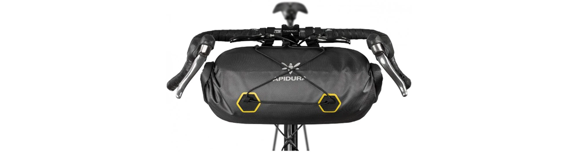 Apidura garde tout ce qui fait la renommĂ©e de sa marque, pour cette sacoche de guidon, en y ajoutant l’aspect Ă©tanchĂ©itĂ© qui pouvait manquer Ă certains cyclistes sur la version classique.