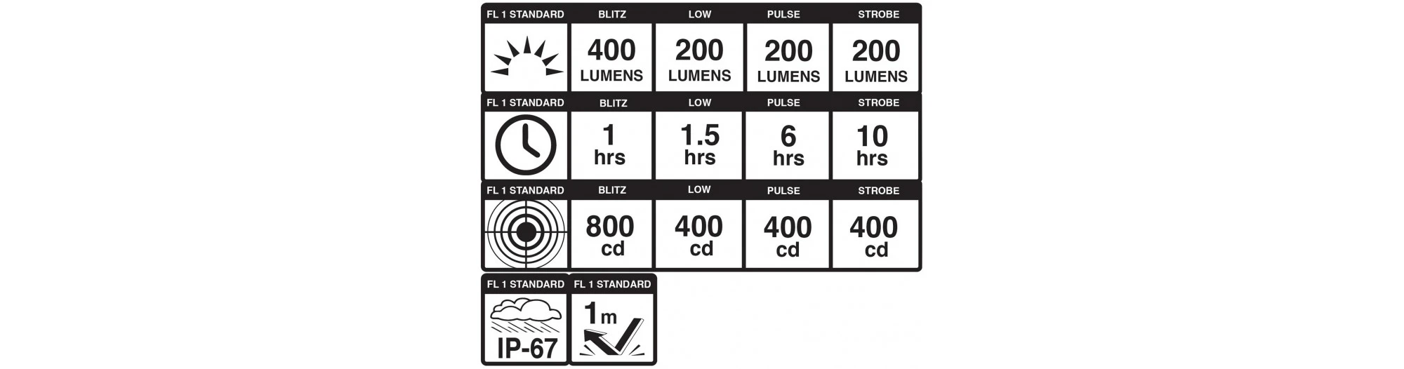 Excellente lumière, excellent prix. Il n’y a pas si longtemps, un phare de 400 lumens Ă ce prix aurait Ă©tĂ© une chimère, mais aujourd’hui, le DayBlazer 400 est un rĂŞve devenu rĂ©alitĂ© ! Avec son mode de conduite diurne BLITZ qui attire l’attention des voitures, sa capacitĂ© de submersion IP-67 et sa gĂ©nĂ©reuse visibilitĂ© latĂ©rale, le DAYBLAZER 400 apporte la lumière lĂ oĂą le conducteur en a le plus besoin. Indicateur de charge LED. DurĂ©e d’exĂ©cution : FLASH 1 heure (400 lumens), Low 1,5 heures (200 lumens). DurĂ©e de l’impulsion/stroboscope : 6 heures (200 lumens)/10 heures (200 lumens).