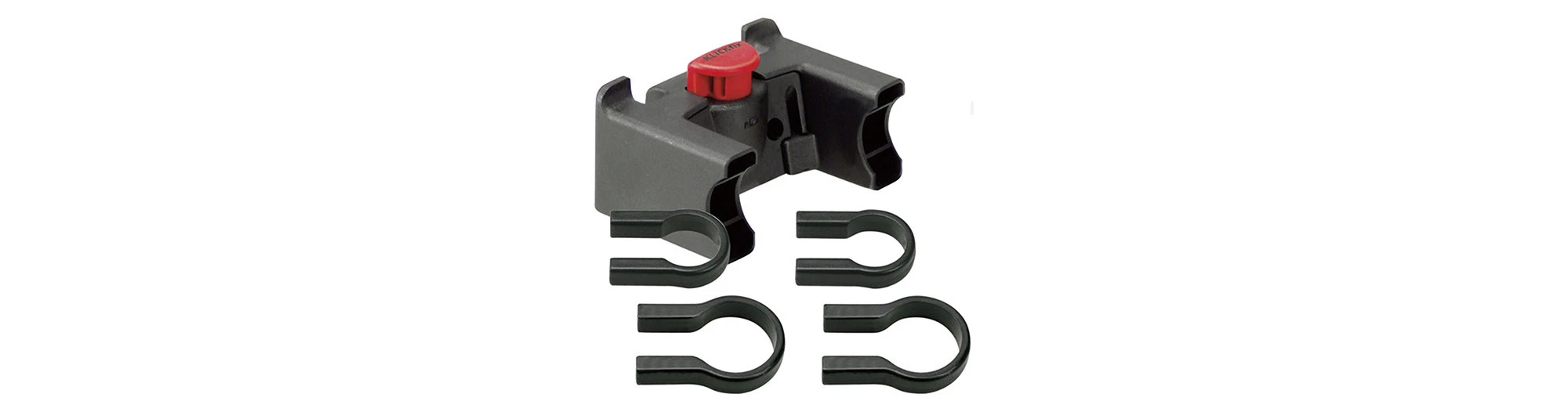 Cet adaptateur renforcé à la fibre de verre permet de fixer d’un simple clic différents accessoires comme un panier, une sacoche ou un porte-carte. De la même manière, l’accessoire se détache aisément et rapidement en appuyant sur le bouton rouge. Grâce au système breveté de serrage par câble, l’adaptateur tient solidement sur le cintre et ne tourne pas, même avec une sacoche plus lourde.