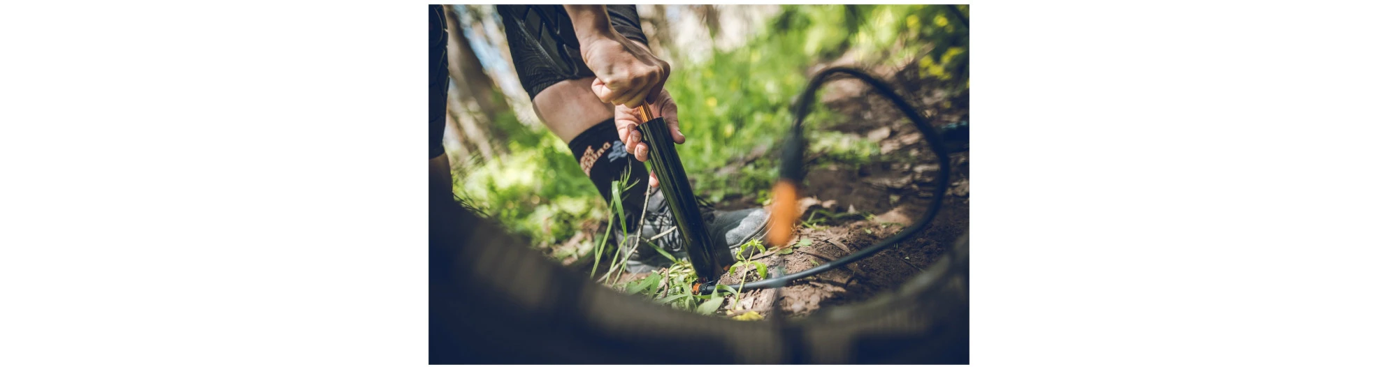 Pompe Ă main portable avec capacitĂ©s de pompe Ă pied. DĂ©veloppĂ©e pour gonfler efficacement pneus de fat bike ou de pneu Ă gros volume d’air. LĂ©gère et durable, en aluminium usinĂ© CNC. Très grand corps Ă haut-volume, produisant jusqu’Ă 35 psi (2.4 bar). Un long corps et des repose-pieds en acier inoxydable permettent d’optimiser le gonflage.