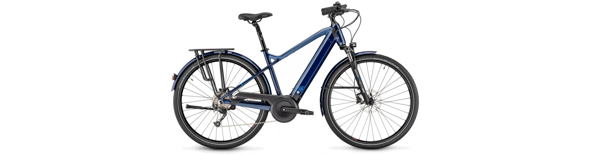 Grâce à son cadre rigide, son système Bosch Active Line Plus et sa fourche de 63mm de débattement, Samedi 28.2 est dynamique et confortable. Il est également parfaitement équipé pour la ville avec un bon nombre d’accessoires tels que son porte-bagages, compatible avec les standards de fixation QL3 et MIK.