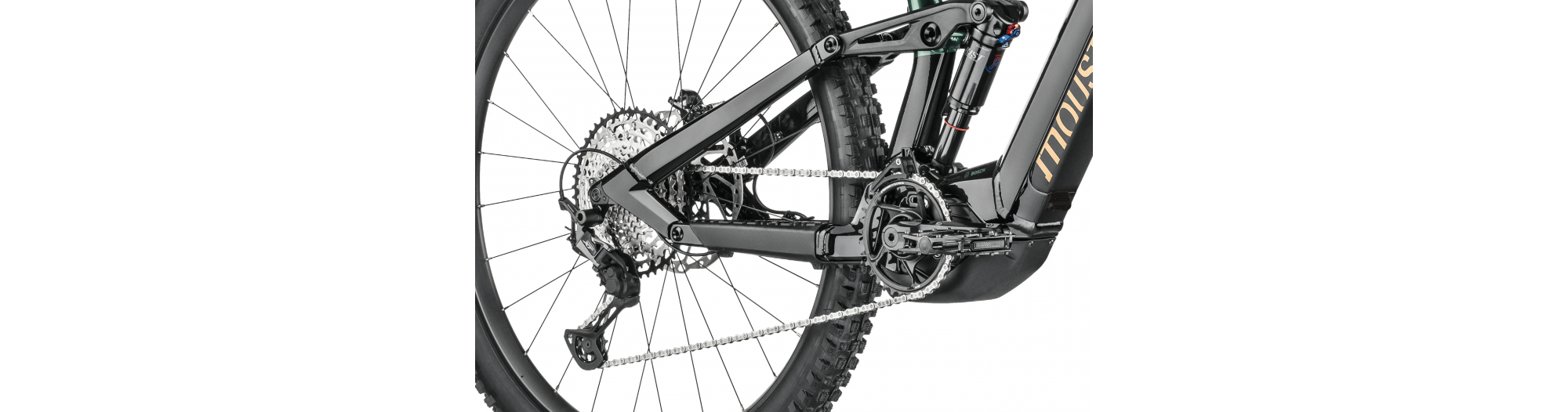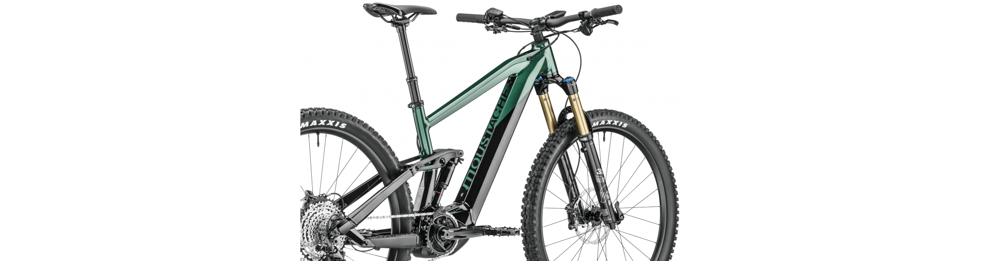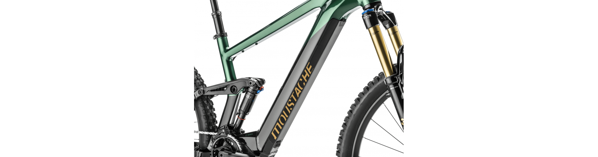 - Amortisseur à air Moustache Magic Grip Control offrant 150 mm de débattement, 2 positions de roulage, un contrôle dynamique du rebond, pour un confort de pilotage combinée à une traction épatante.