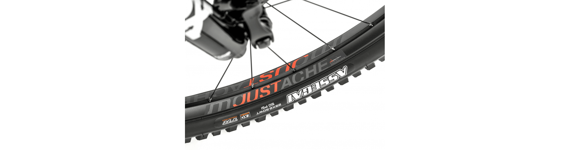- DĂ©veloppĂ©es par les ingĂ©nieurs de Moustache et assemblĂ©es entièrement en France, les roues sont montĂ©es avec des jantes 29″ asymĂ©triques Moustache Just_Carbon en carbone Toray T700S. La largeur interne de 31mm est optimisĂ©e pour la monte des pneus Maxxis Assegai 3C MaxxTerra 29×2.50 apportant une grande surface de contact pour une adhĂ©rence accrue Ă tout moment.