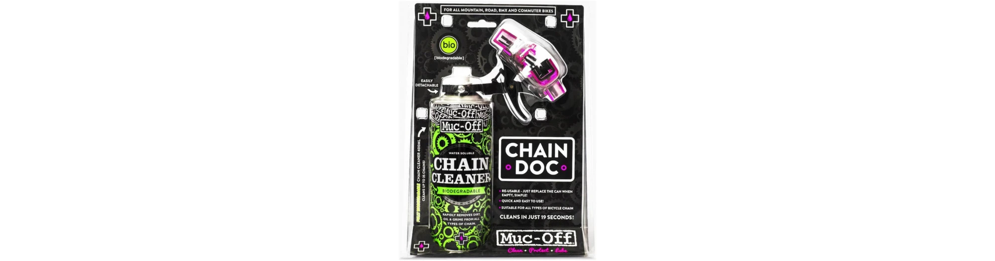 Le Chain Doc est livré complet avec une boîte de Muc-Off Bio Chain Cleaner, ce qui le rend prêt à être nettoyé dès sa sortie de la boîte.