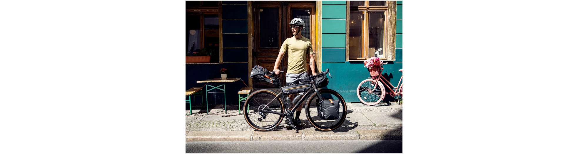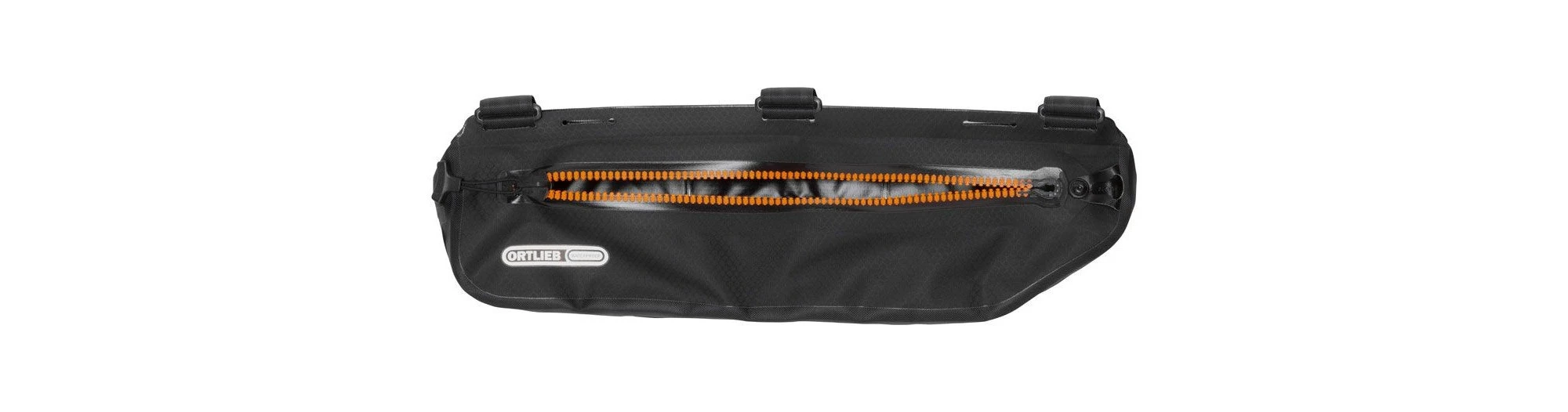 Il s’agit là d’une solution parfaitement étudiée pour tous ceux qui souhaitent certes caser des bagages dans le cadre mais ne veulent pas renoncer à leur gourde. Même les propriétaires de vélos tout terrain à suspension intégrale, qui limite l’espace dans le triangle du cadre, pourront ainsi caser des bagages dans le cadre. Avec un volume de quatre litres, la Frame-Pack Toptube d’ORTLIEB offre suffisamment d’espace pour ranger un équipement lourd comme des piquets de tente, des outils ou des provisions, placés sur le vélo à un centre de gravité bas. Étanchéité à l’eau garantie pour la sacoche mais également pour sa fermeture à glissière ; plus rien ne s’oppose donc à ton circuit bikepacking avec traversée de rivière. Elle se fixe sans aucune difficulté au tube supérieur et au tube d’assise du vélo, à l’aide de fermetures auto-agrippantes solides et de forte adhérence.