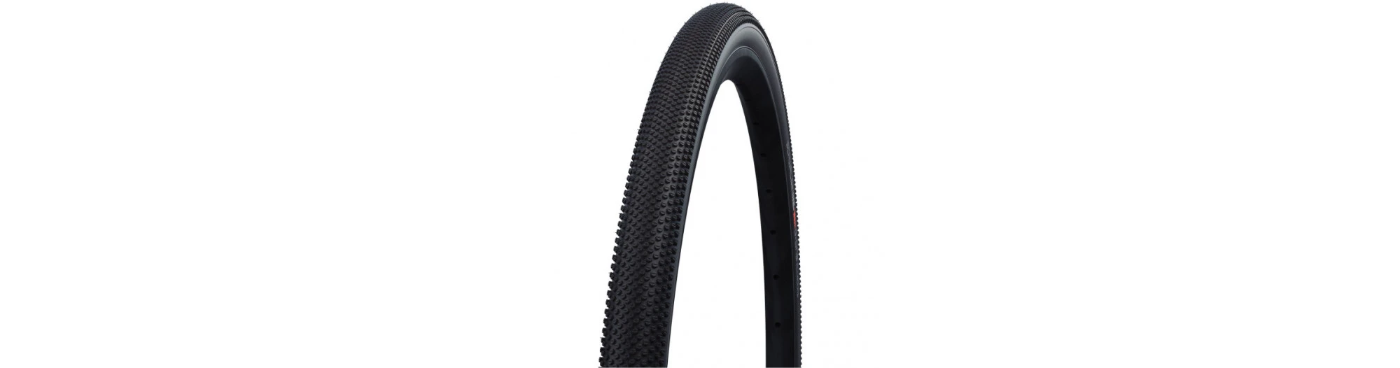 - Le profil polyvalent roule facilement et avec peu de vibrations, mais adhère de manière sûre et fiable sur les chemins de gravier ainsi que sur les pistes légères et sèches.