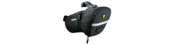 Aero Wedge Pack est une gamme de sacoches de selle de chez Topeak. Cette petite sacoche sportive au design Ă©lancĂ© se fixe en un clin d’Ĺ“il Ă l’aide de deux sangles Ă boucle rapide sous la selle ainsi qu’avec un velcro Ă la tige de selle (diamètre 27.2 mm-34.9 mm). L’Aero Wedge Pack Micro est la sacoche la plus petite et la plus lĂ©gère de la famille Aero Wedge Pack mais offre cependant suffisamment de place pour l’essentiel. Le contenu est facilement accessible mĂŞme lorsque la sacoche est fixĂ©e par un rabat ouvrable vers l’arrière.