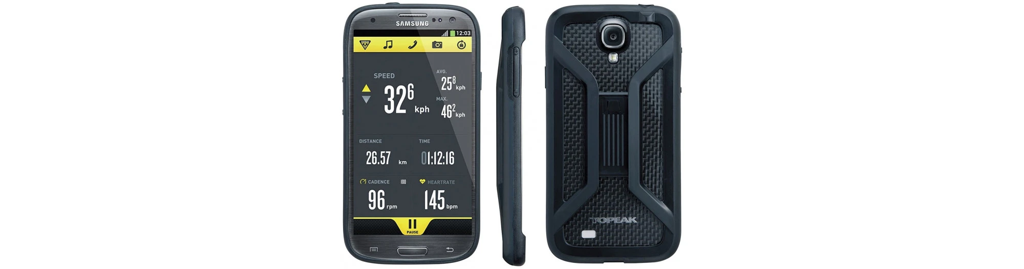 Support de smartphone Samsung Galaxy S4 avec cadre en plastique résistant aux chocs avec plaque de base en fibre de carbone.
