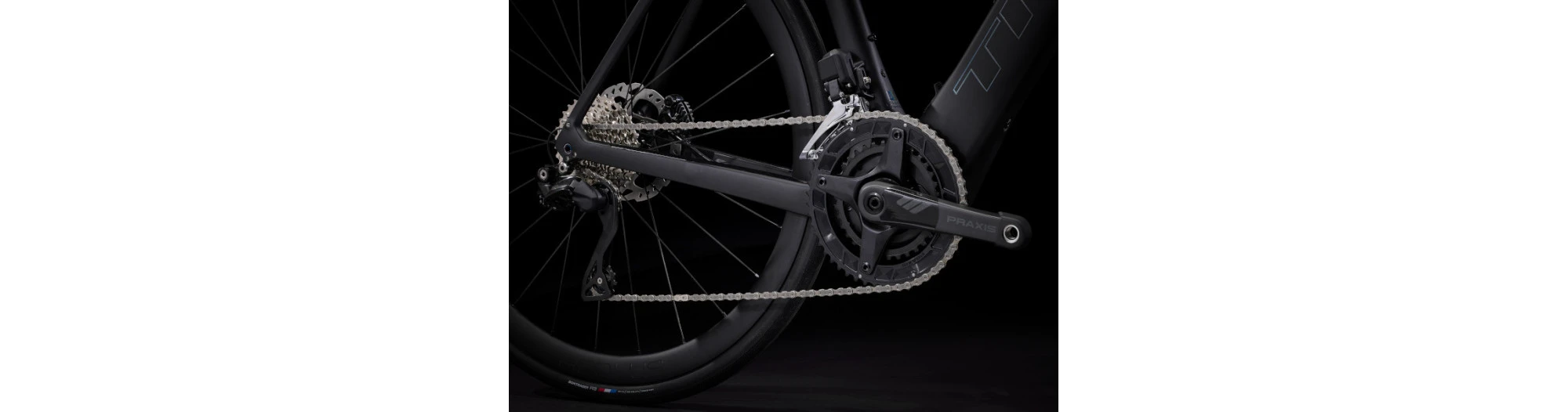 Un cadre en OCLV Carbon SĂ©rie 800 d’une suprĂŞme lĂ©gèretĂ© avec technologie IsoSpeed Ă l’arrière. Un puissant moteur TQ Ă dĂ©multiplicateur harmonique Ă anneau Ă broches, de 50 Nm assistant le pĂ©dalage jusqu’à 25 km/h, une batterie intĂ©grĂ©e de 360 Wh, un afficheur LED intelligent intĂ©grĂ©, et des commandes de mode d’assistance discrètement intĂ©grĂ©es aux cocottes. Des roues Aeolus Pro 37 en carbone OCLV, une transmission Ă©lectronique sans fil Shimano 105 2×12 Di2, des manivelles de pĂ©dalier en carbone, un cintre Bontrager Pro Iso-Core anti-vibrations et une potence RCS Pro Ă acheminement interne des câbles, pour un style Ă©purĂ©.