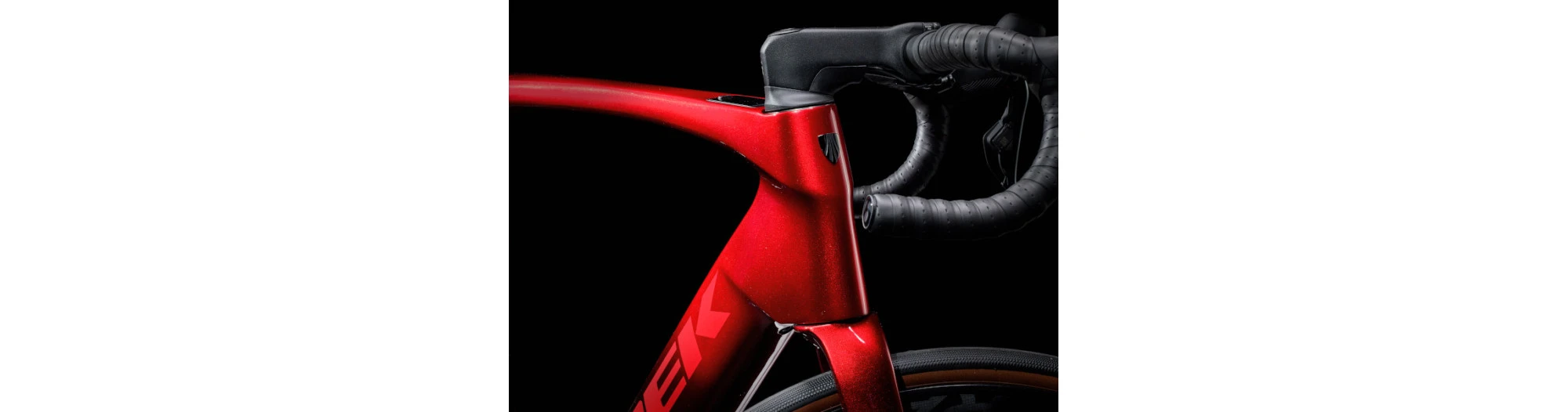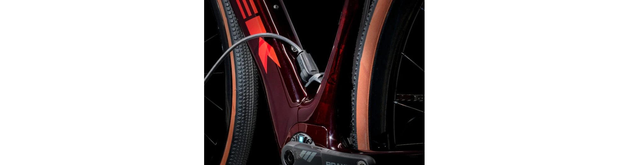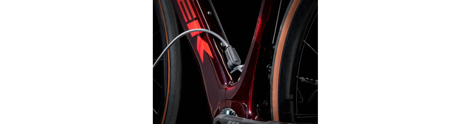 - Domane+ carbone, pivot conique carbone, acheminement interne des câbles de frein, fixations pour garde-boue, freins Ă disque Ă fixation Flat-Mount, axe traversant 12×100 mm
