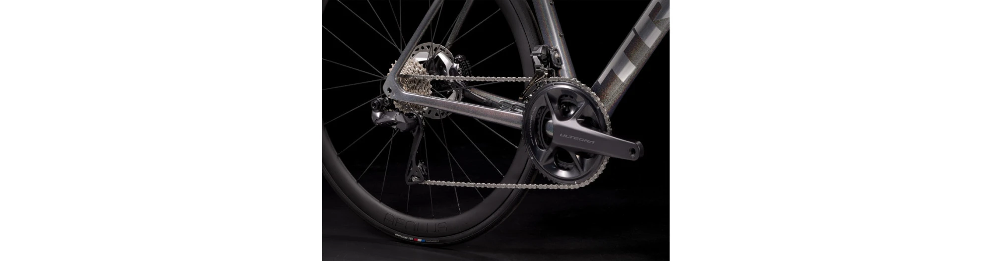 - Un cadre en OCLV Carbon SĂ©ries 800 ultra-lĂ©ger et aĂ©rodynamique qui pèse moins de 700 grammes, une fourche intĂ©gralement en carbone, une transmission Ă©lectronique sans fil 2×12 Shimano Ultegra Di2, des roues lĂ©gères tubeless ready Bontrager Aeolus Pro 37 en OCLV Carbon, un combinĂ© cintre aĂ©rodynamique/potence Aeolus RSL en OCLV Carbon et de puissants freins Ă disque hydrauliques.