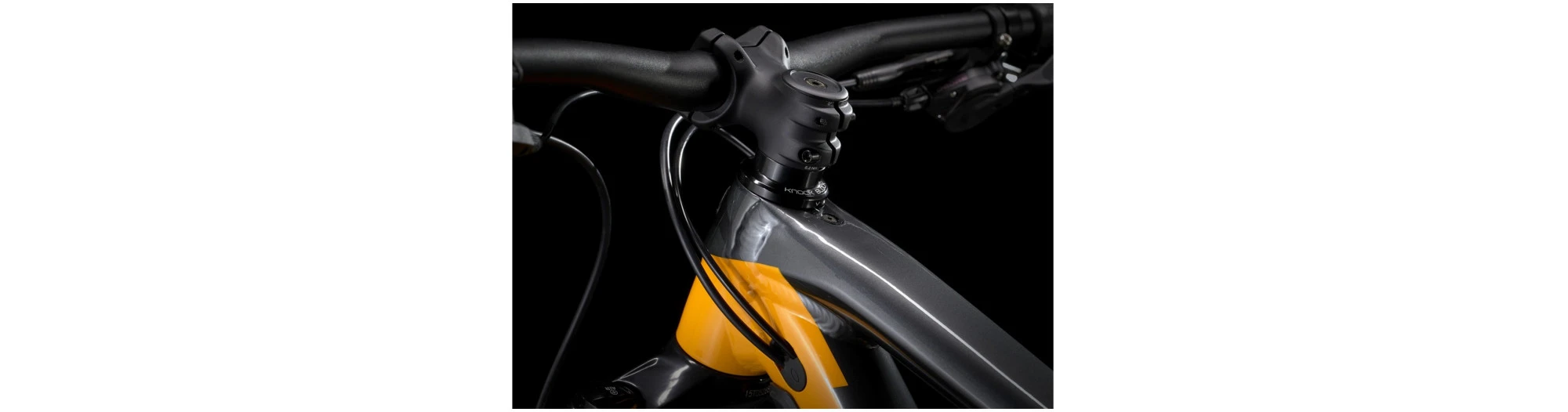 - Aluminium Alpha Platinum, douille de direction conique, Knock Block, acheminement interne Control Freak, protection du tube diagonal, ISCG 05, basculeur en magnésium, Mino Link, ABP, Boost148, débattement de 130 mm