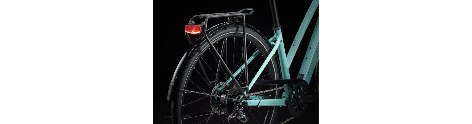 - Toute la polyvalence et la confiance du FX, avec une assistance électrique vous aidant à rouler plus loin ! Le FX+ est également doté d’accessoires comme un porte-bagages et des garde-boue qui vous faciliteront la tâche lors de vos déplacements.