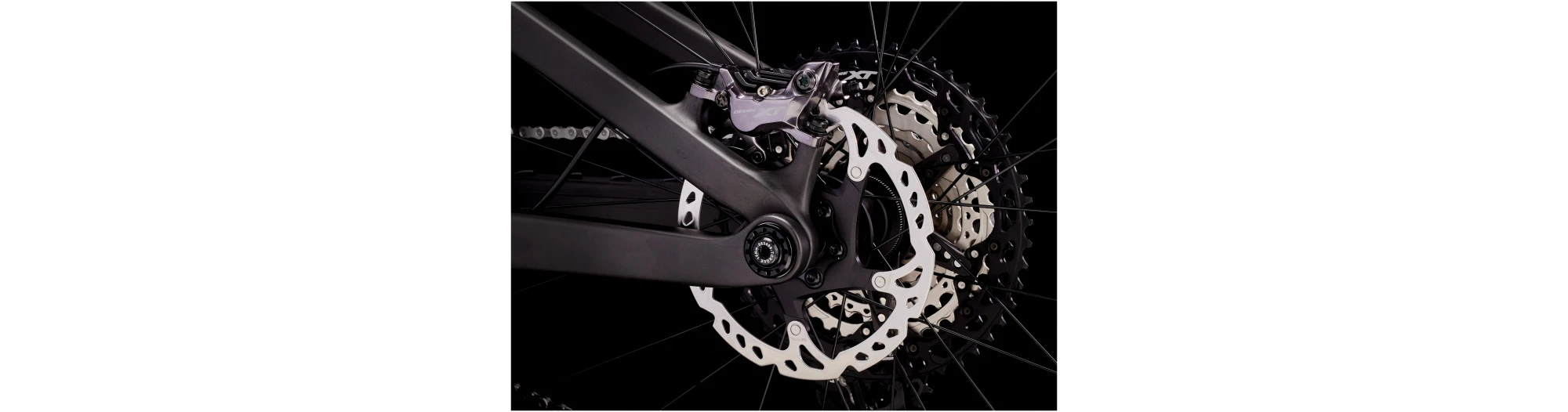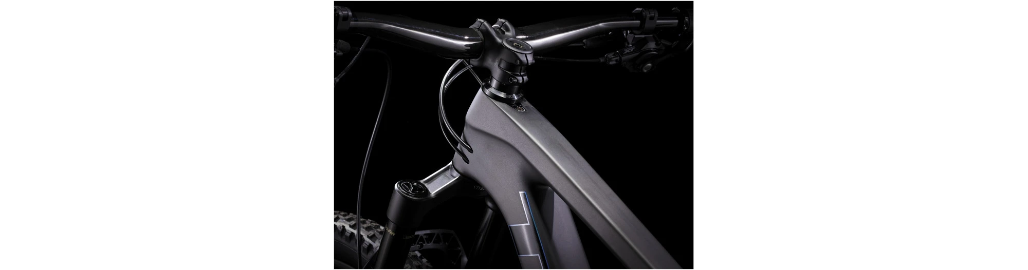 - OCLV Mountain Carbon, espace de rangement interne, douille de direction conique, Knock Block 2.0, acheminement interne guidé, protection du tube diagonal, basculeur en magnésium, Mino Link, ABP, Boost148, débattement de 120 mm