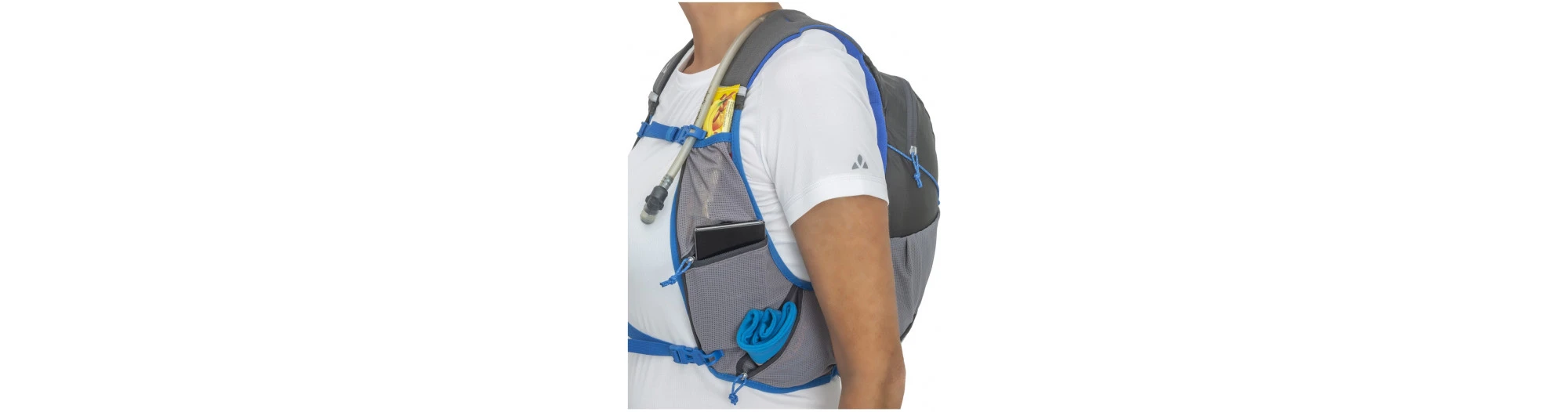 - bretelles avec poche en mesh élastique pour le gel, la barre énergétique, etc.
