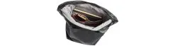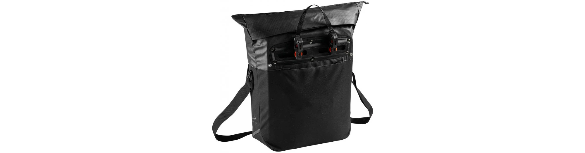 Difficile de s’en passer ! Que ce soit pour faire les boutiques le samedi ou comme accessoire élégant au quotidien. CityShop Bike est un cabas chic à l’équipement minimaliste qui se fixe au porte-bagages. Avec sa capacité de … l, il est efficace sur les marchés. Parvenu à destination, la barre discrète par son poids et dotée de crochets QMR verrouillables (p. ex. avec un cadenas Abus 145/20 non compris dans la livraison) se fait invisible grâce au rabat muni de 2 boutons-pression. Le cabas se porte de manière classique avec deux longues poignées escamotables, sur l’épaule ou en bandoulière avec une bandoulière réglable en longueur et amovible. Le cabas est fermé en toute sécurité avec une fermeture à glissière sur le haut. L’intérieur renferme un compartiment non rembourré accroché à l’intérieur au format tablette (… „) et un compartimentage en filet muni d’une fermeture à glissière qui peut accueillir les accessoires comme le porte-monnaie, smartphone et stylos. Le fond stabilisé assure une bonne tenue. Des éléments réfléchissants sont intégrés à son design ainsi que sur la housse de pluie intégrée. Des passants discrètement placés permettent de compléter l’équipement par le kit OSRAM-Light me up