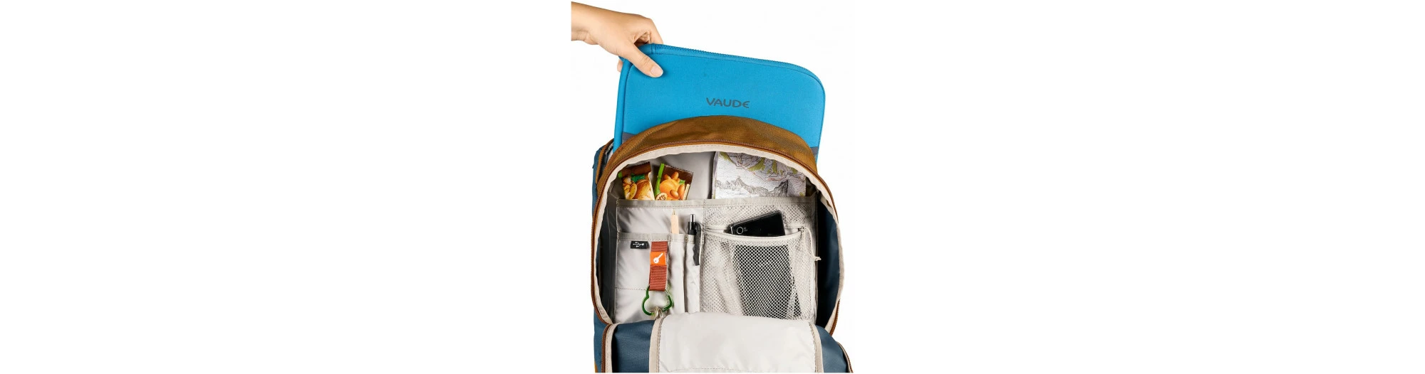 Sac à dos ou sacoche de vélo ? Les deux mon capitaine ! Cycle 20 est le compagnon idéal des navetteurs qui souhaitent profiter d’une bonne tenue du sac lors du trajet en selle tout en pouvant le porter comme un sac à dos dans le train et le bus ou à la fac. Le sac est fixé sur le porte-bagages grâce à un crochet verrouillable QMR (p. ex. avec un cadenas Abus 145/20, non compris dans la livraison) et se transforme en sac à dos en un tour de main. Il suffit d’ouvrir les deux zips verticaux à cet effet et de ranger l’ensemble du système de fixation dans un compartiment fermé par velcro. La fonction de conversion est détaillée sur une étiquette cousue et facilement retirable. Cette combinaison maline a encore plus d’un tour dans son sac. Le compartiment principal pouvant accueillir des documents au format DIN A4 permet de maintenir tout en ordre avec son compartimentage en filet doté d’une fermeture à glissière pour loger des petits accessoires. Un compartiment séparé fermé par un zip et rembourré accueille des ordinateurs portables jusqu’à 15,6“. Une poche plate en filet sur l’avant permet de ranger rapidement des journaux ou un vêtement mouillé. Une fixation de casque ainsi que des éléments réfléchissants élégamment intégrés au design complètent son équipement tout confort. Le matériau principal de Cycle est composé à 50 % de polyester recyclé, et le matériau contrasté même à 100 %. Notre artiste transformiste est apprêté avec la finition Eco Finish déperlante sans PFC. Le label Green Shape de VAUDE garantit un produit écologique, fonctionnel et fabriqué dans des matériaux durables.