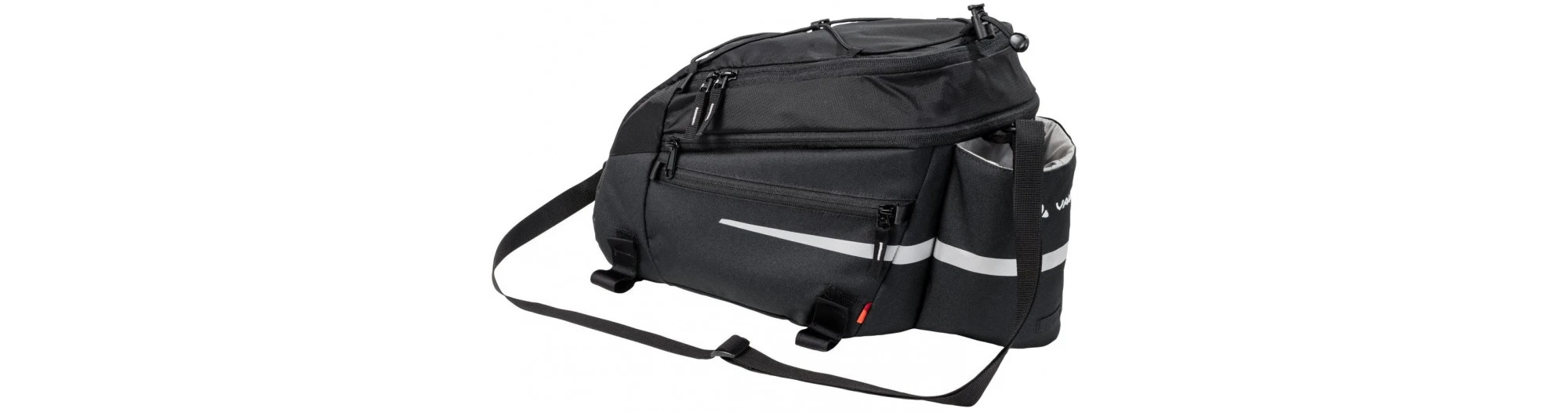 Porte vos bagages ! Cette sacoche pour porte-bagage avec une contenance de 9+2 litres et porte-gourde, peut être fixée grâce à des velcros. Cela permet de transporter notamment la batterie de votre vélo électrique. Grâce aux tendeurs, il est possible de transporter encore plus de bagages.